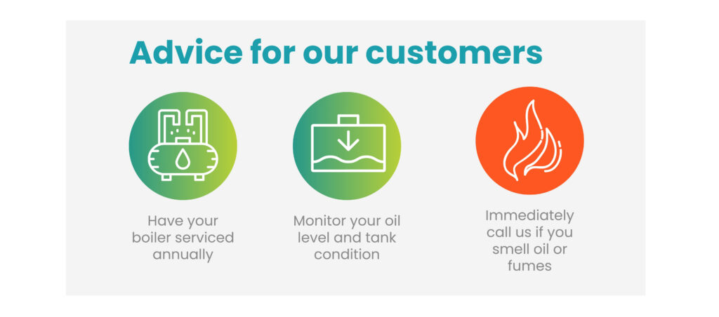 Signs of inefficient burning include strong fumes, black smoke from the flue, or increased oil usage. With proper annual servicing and preventative maintenance, an oil boiler can last 20–25 years